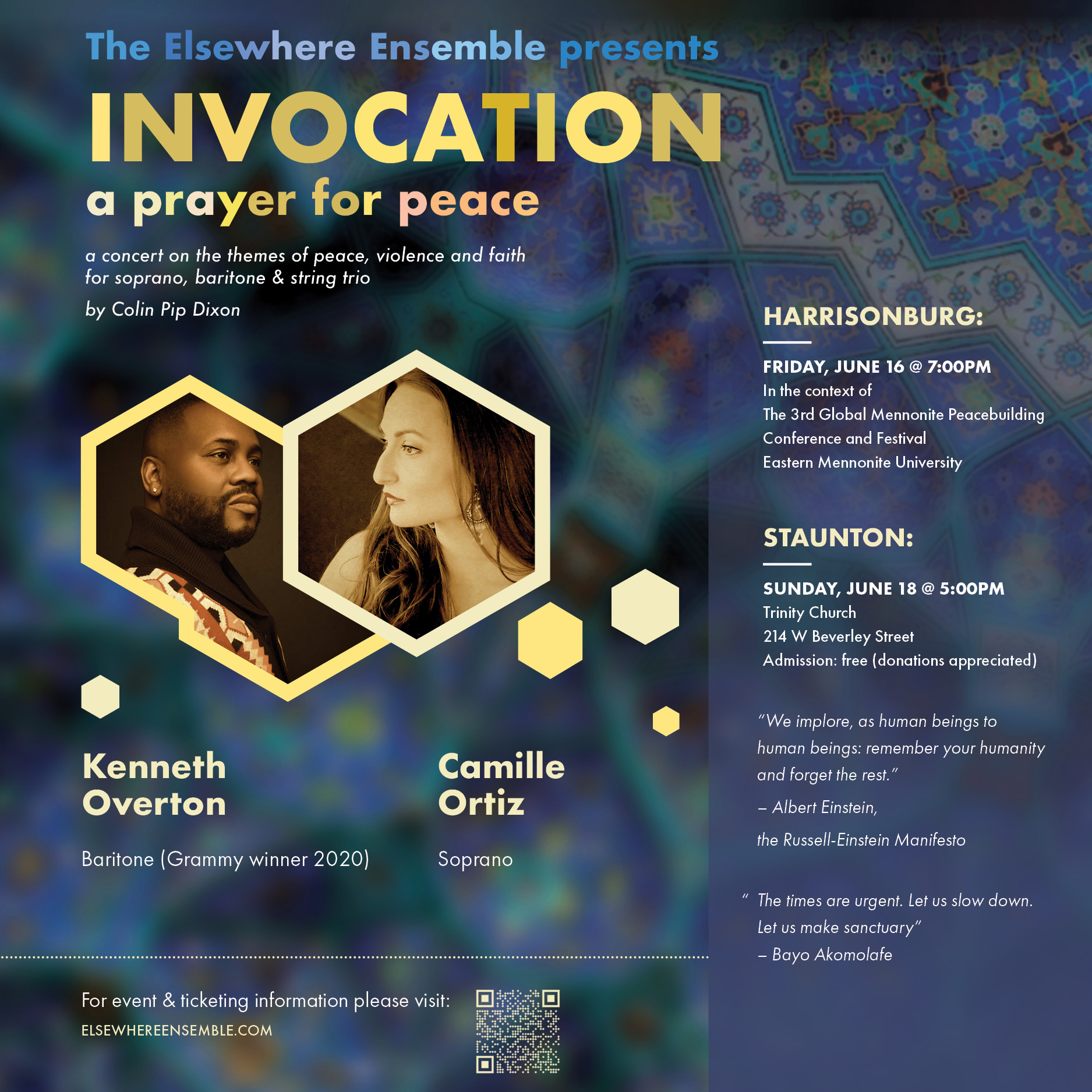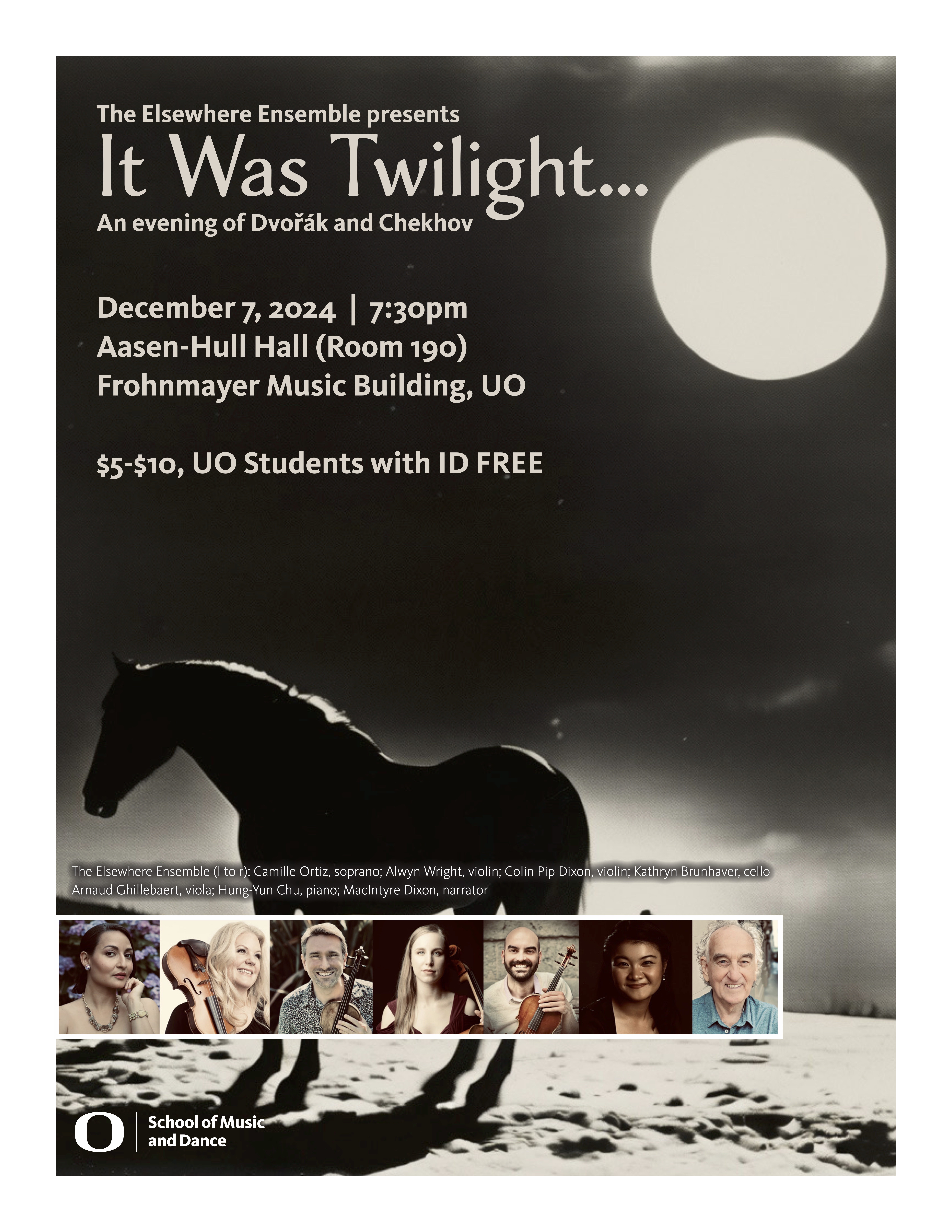 Acclaimed Broadway actor MacIntyre Dixon is the narrator. It promises to be an unforgettable evening of humor, beauty, and light. The Elsewhere Ensemble has enchanted audiences worldwide, from Oregon to New York, Paris, Beirut and beyond!