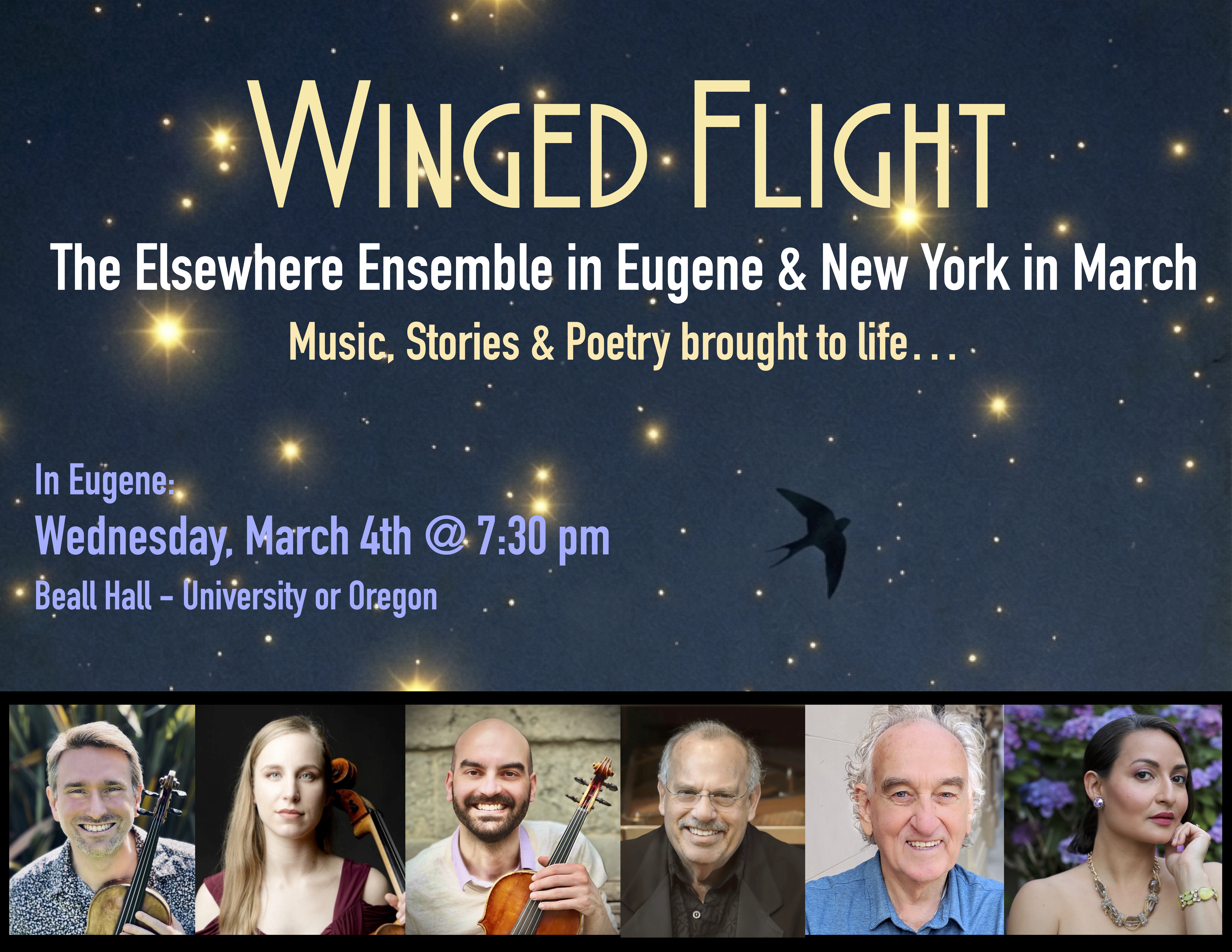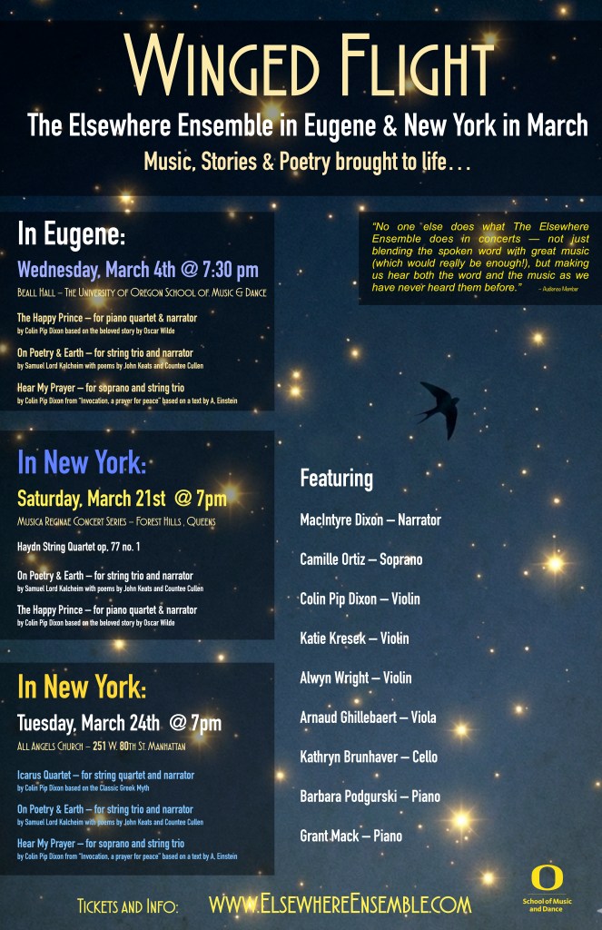 February 27, 2026 by Colin Pip Dixon The Elsewhere Ensemble in Eugene and New York City in March! FOR TICKETS AND MORE INFO CLICK HERE Share this: Share on X (Opens in new window) X Share on Facebook (Opens in new window) Facebook Like Loading... Related